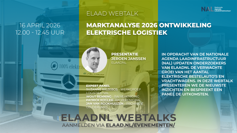 Webinar donderdag 16 april 2026 12 uur Marktanalyse 2026: Ontwikkeling elektrische logistiek Jeroen Janssen (ElaadNL)