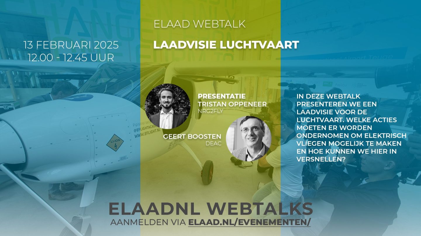 Wat is er nodig om elektrisch vliegen van de grond te krijgen? In deze webtalk presenteren Tristan Oppeneer van NRG2fly en Geert Boosten van DEAC een laadvisie voor de luchtvaart. Deze bestaat uit 5 concrete actiepunten voor de sector om zo het opladen van elektrische vliegtuigen mogelijk te maken en te kunnen versnellen. Namens ElaadNL sluit ook Jeroen Janssen aan bij het gesprek.