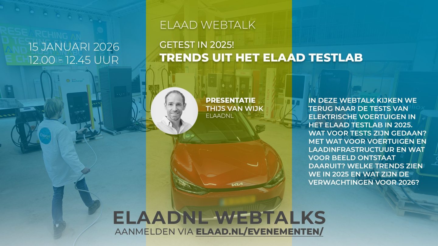 In deze webtalk kijken we terug naar de tests van elektrische voertuigen in het Elaad TestLab in 2025. Wat voor tests zijn gedaan? Met wat voor voertuigen en laadinfrastructuur en wat voor beeld ontstaat daaruit? Welke trends zien we in 2025 en wat zijn de verwachtingen voor 2026? Thijs van Wijk van het Elaad Testlab vertelt er alles over in deze webtalk.