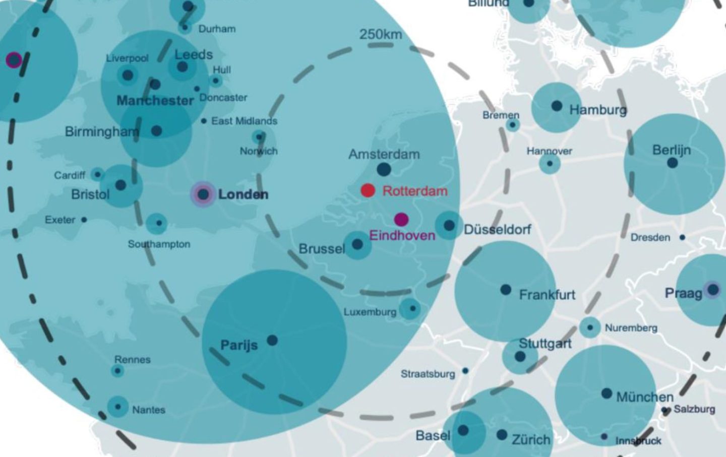 Potentiële oplaadlocaties voor vliegtuigen zijn de vijf grotere luchthavens en met name de regionale luchthavens in Nederland.
